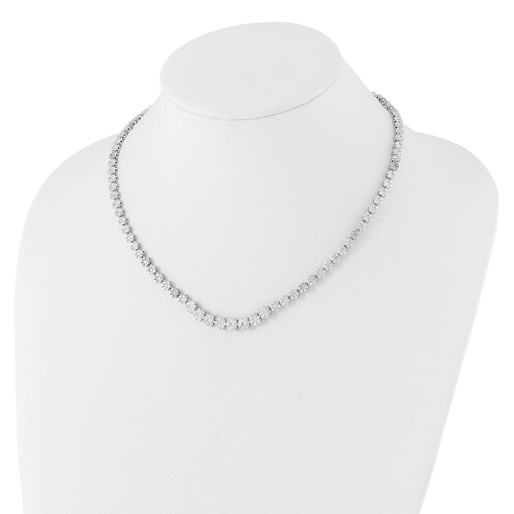 Cheryl M Sterling Silver Rhodium-plated Fancy Graduated Brilliant-cut CZ Cluster Necklace with Extender