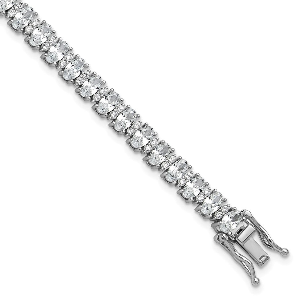 Cheryl M Sterling Silver Rhodium-plated Fancy Oval CZ Bracelet