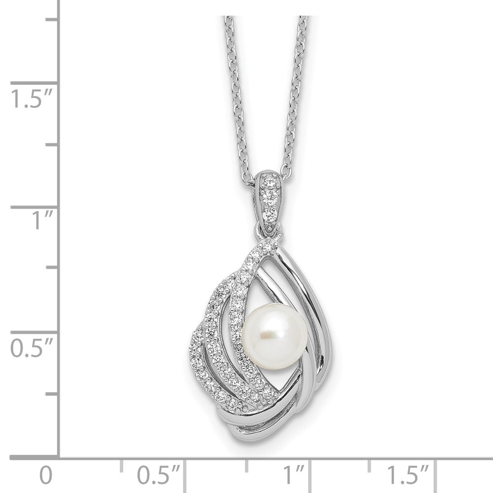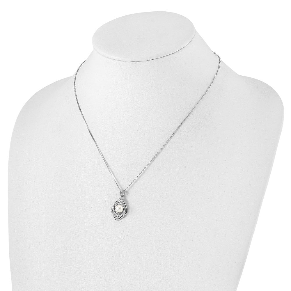 Cheryl M Sterling Silver Rhodium-plated Freshwater Cultured Pearl and Brilliant-cut CZ Teardrop Design Necklace with Extender