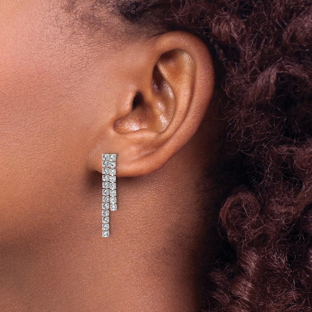 Cheryl M Sterling Silver Rhodium-plated Polished 2-Row CZ Post Dangle Earrings