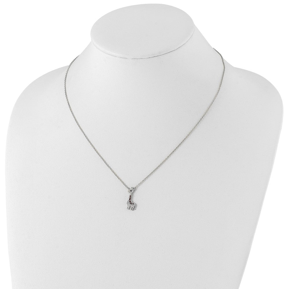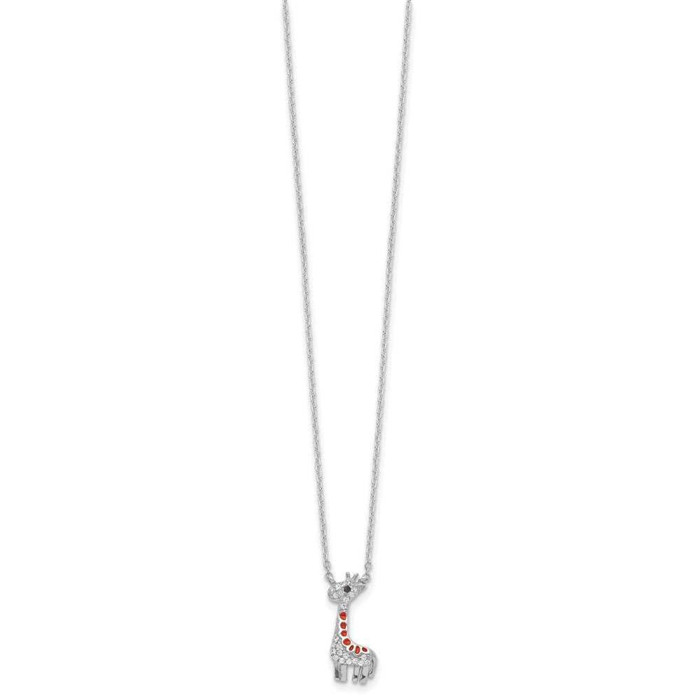 Cheryl M Sterling Silver Rhodium-plated Polished and Enameled Black and White CZ Giraffe with Extension Necklace
