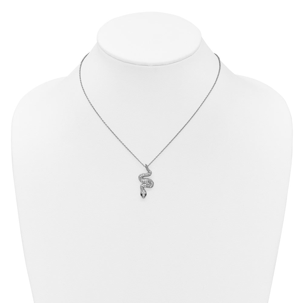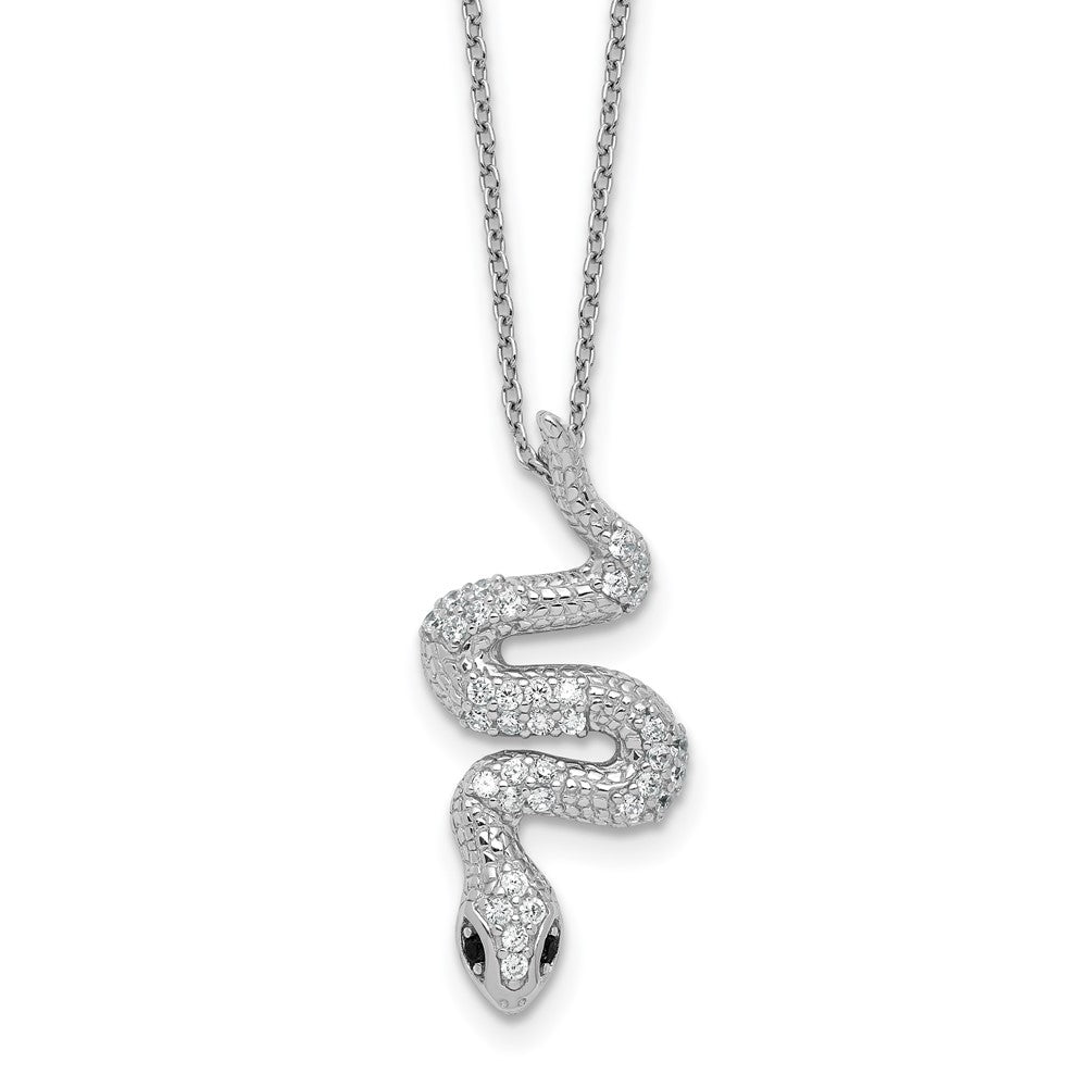 Cheryl M Sterling Silver Rhodium-plated Polished Black and White CZ Snake with Extension Necklace