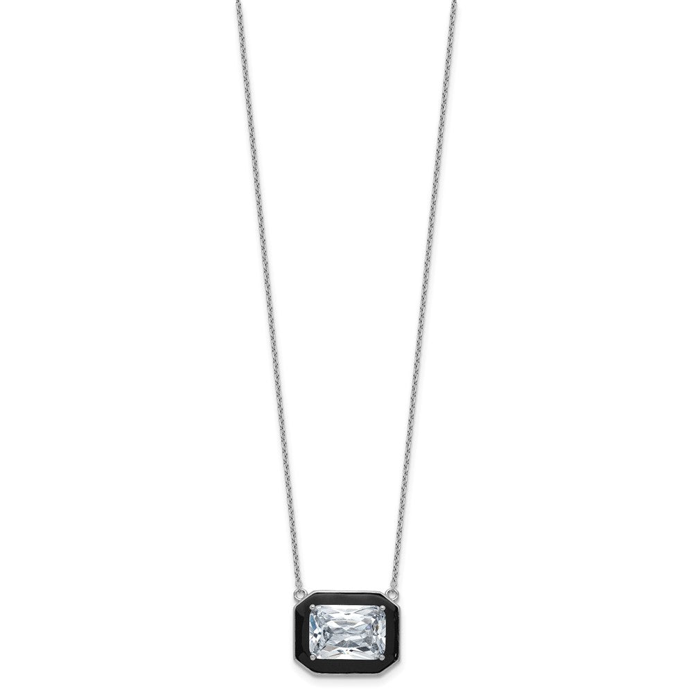 Cheryl M Sterling Silver Rhodium-plated Polished Black Enamel and Emerald-cut CZ Necklace