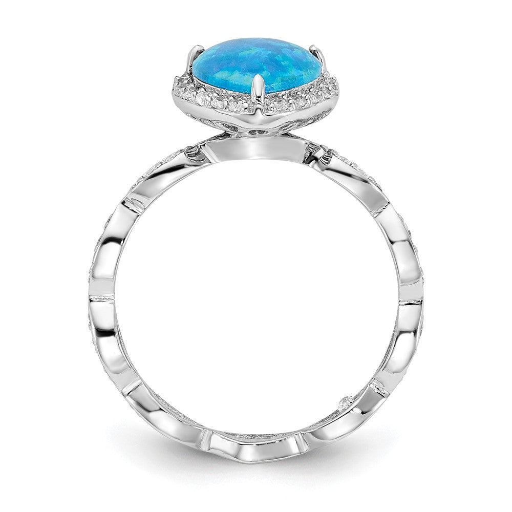 Cheryl M Sterling Silver Rhodium-plated Polished Blue Lab Created Opal and CZ Teardrop Halo Ring