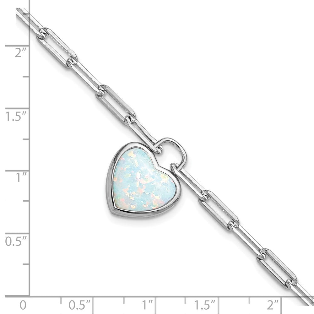 Cheryl M Sterling Silver Rhodium-plated Polished Created Opal Heart Paperclip Link with Extension Bracelet