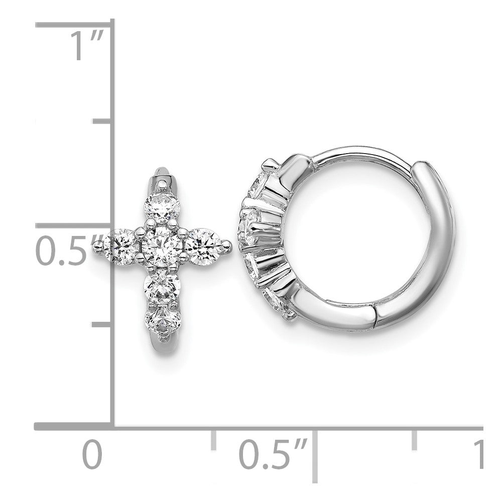 Cheryl M Sterling Silver Rhodium-plated Polished CZ Cross Hinged Round Hoop Earrings