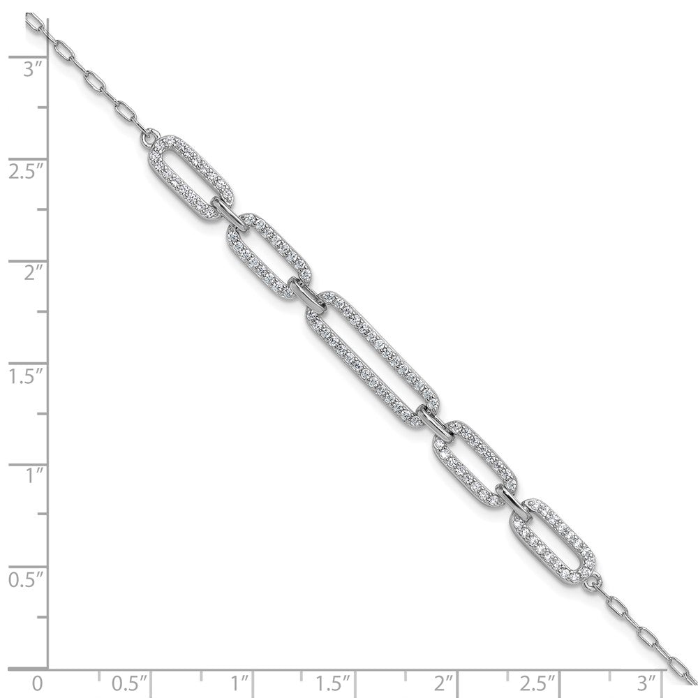 Cheryl M Sterling Silver Rhodium-plated Polished CZ Links with 1. Extension Bracelet