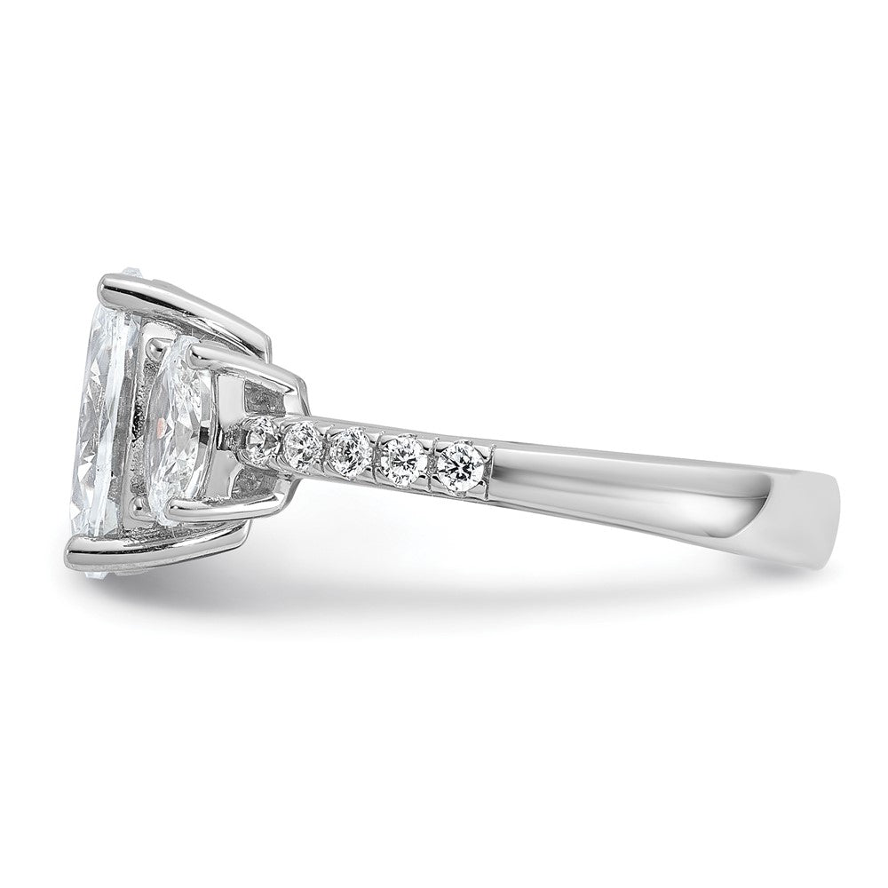 Cheryl M Sterling Silver Rhodium-plated Polished Fancy 3-Stone Oval CZ Ring