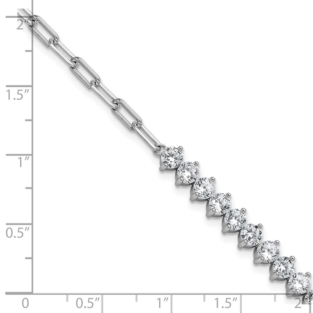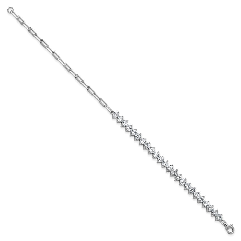Cheryl M Sterling Silver Rhodium-plated Polished Fancy CZ and Paperclip Link Bracelet