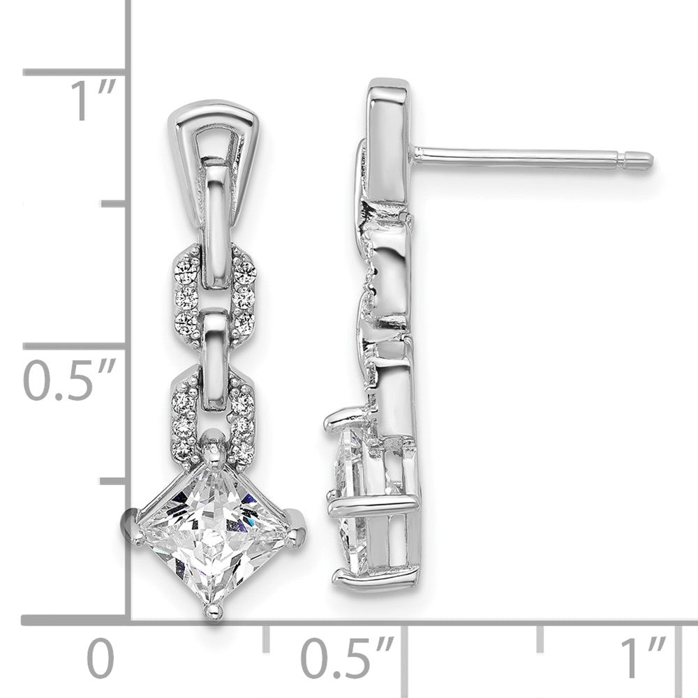 Cheryl M Sterling Silver Rhodium-plated Polished Fancy CZ Link Post Dangle Earrings