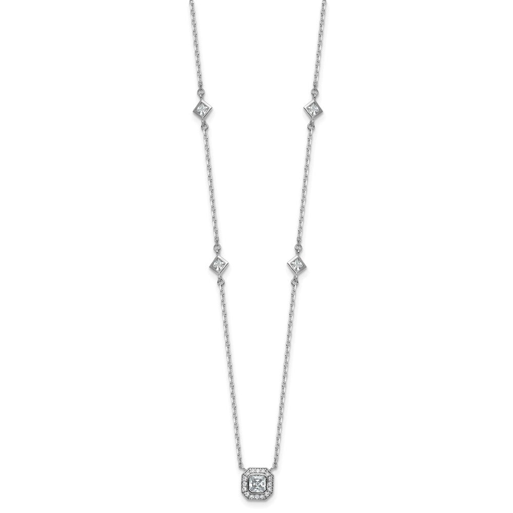 Cheryl M Sterling Silver Rhodium-plated Polished Fancy CZ Station with Extension Necklace
