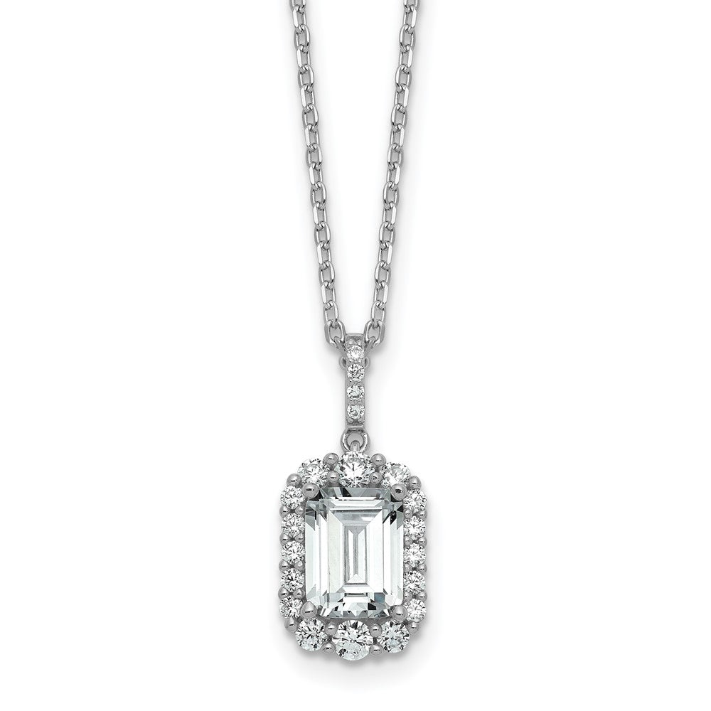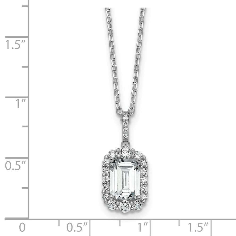 Cheryl M Sterling Silver Rhodium-plated Polished Fancy Emerald-cut CZ Halo with Extension Necklace
