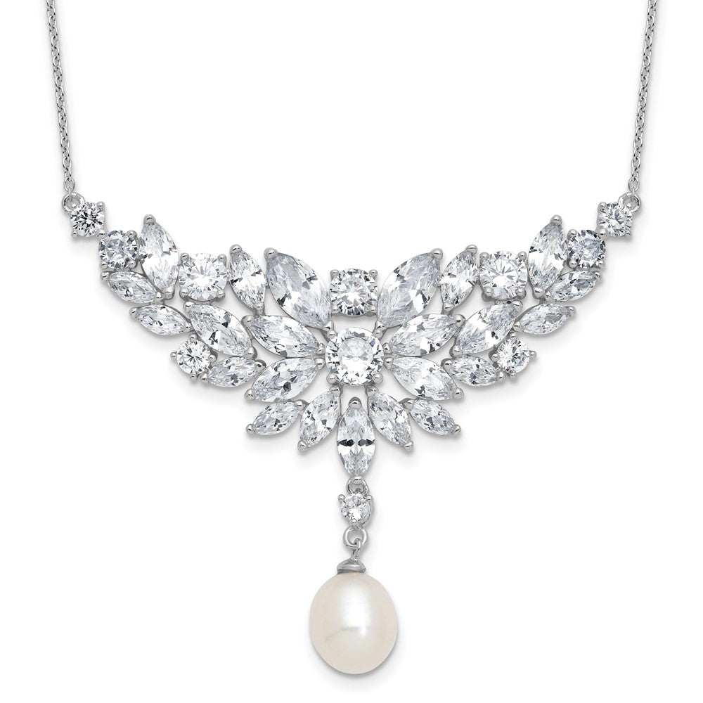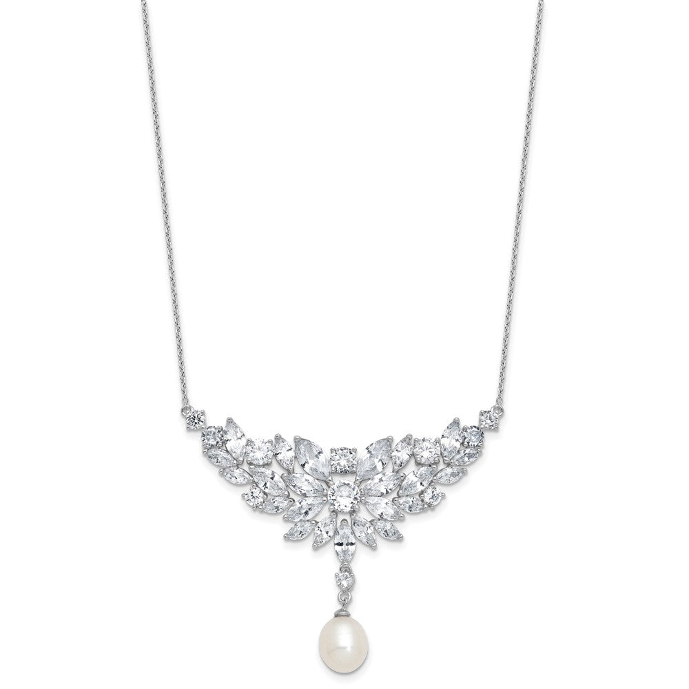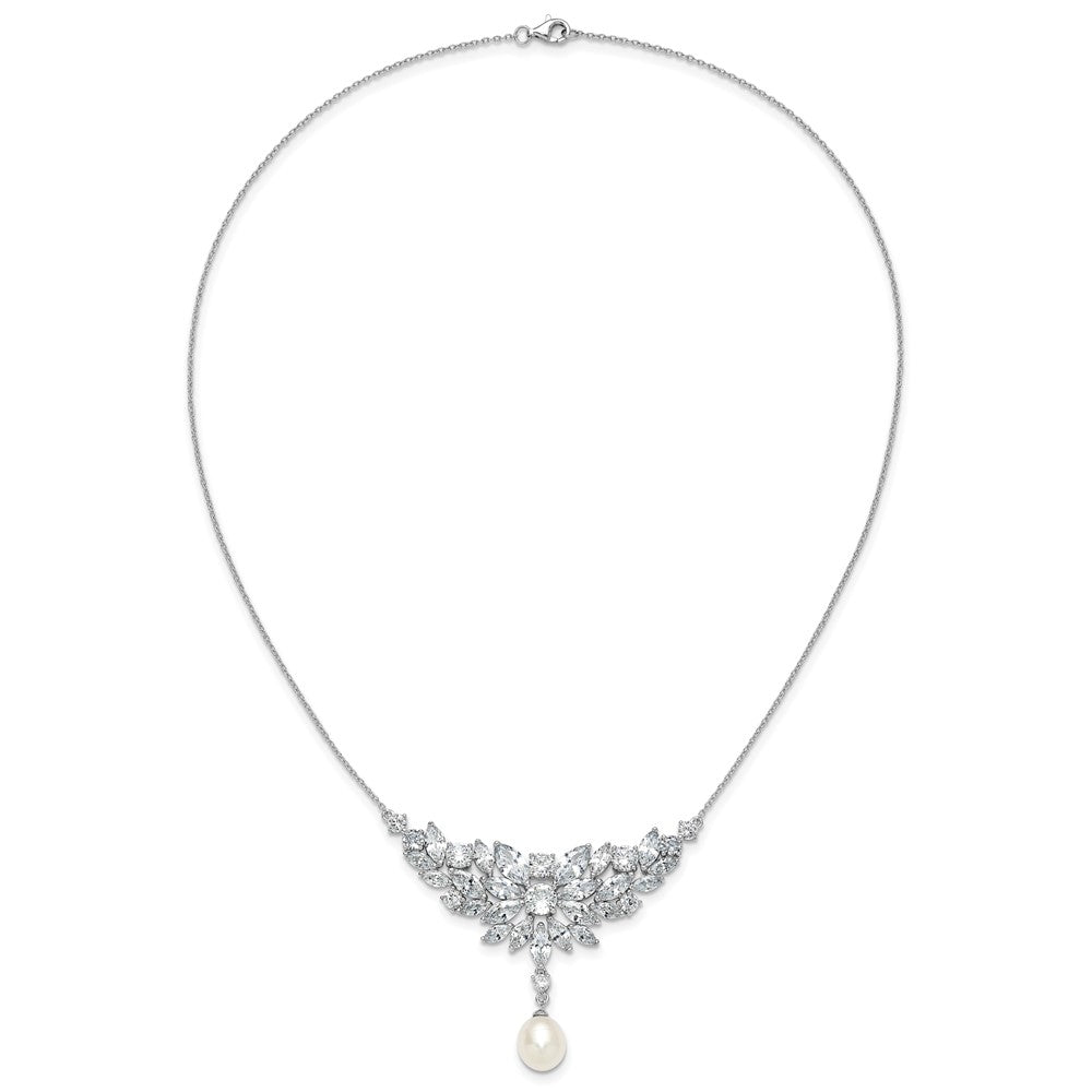 Cheryl M Sterling Silver Rhodium-plated Polished Fancy Freshwater Cultured Pearl and CZ Necklace