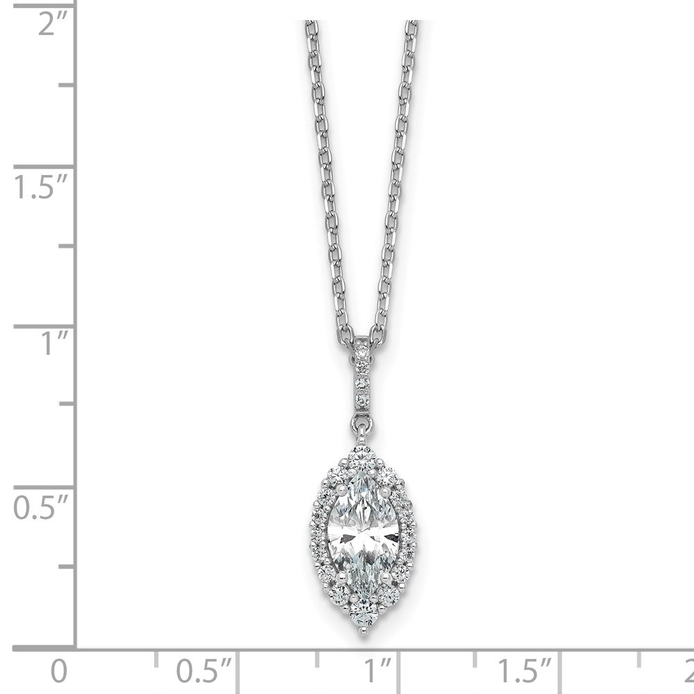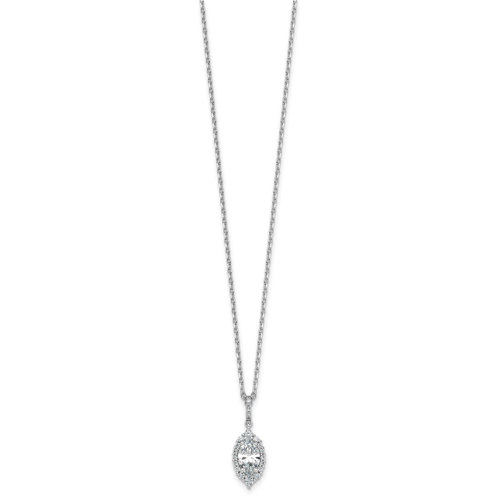 Cheryl M Sterling Silver Rhodium-plated Polished Fancy Marquise CZ Halo with Extension Necklace