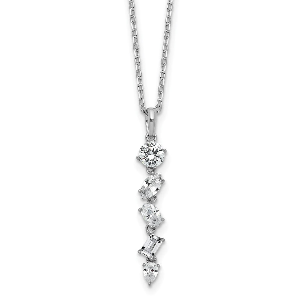 Cheryl M Sterling Silver Rhodium-plated Polished Fancy Multi-cut CZ with Extension Necklace