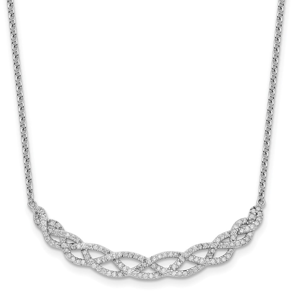 Cheryl M Sterling Silver Rhodium-plated Polished Fancy Woven CZ with Extension Necklace