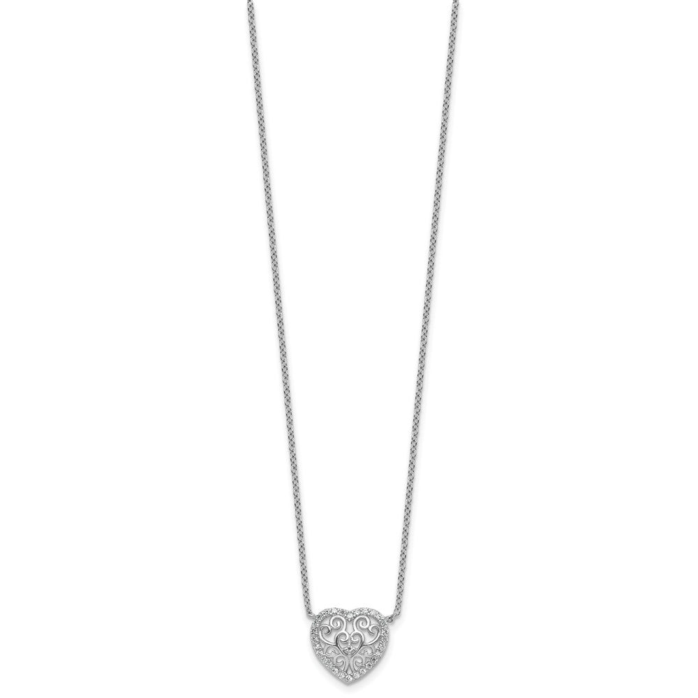 Cheryl M Sterling Silver Rhodium-plated Polished Filigree CZ Heart with Extension Necklace