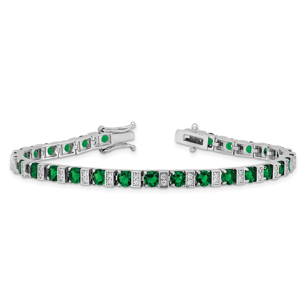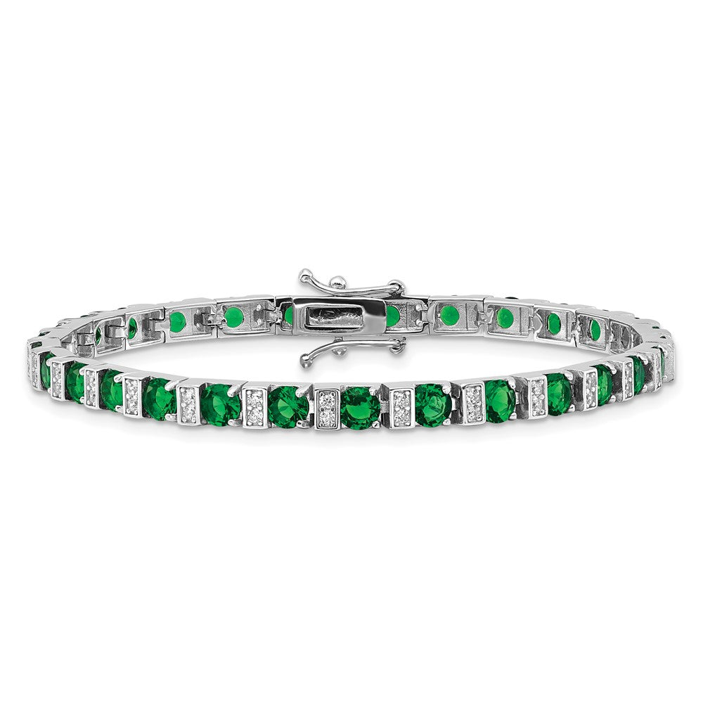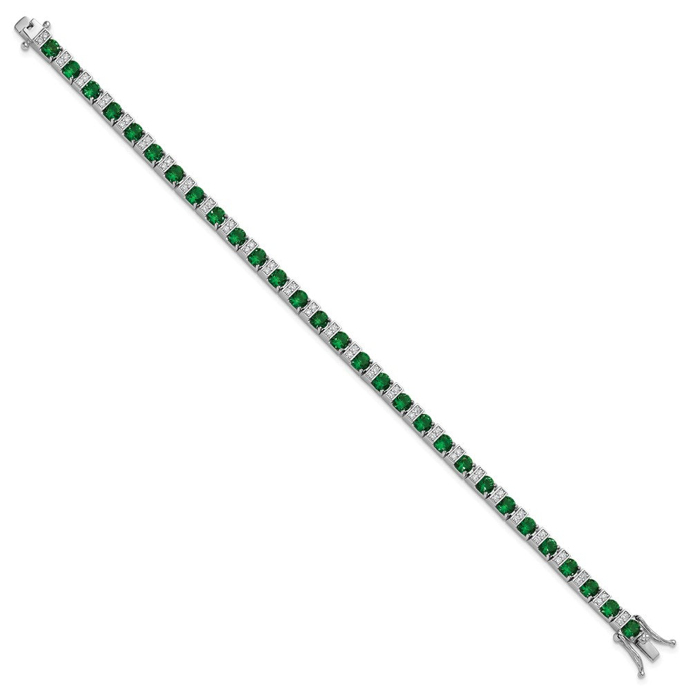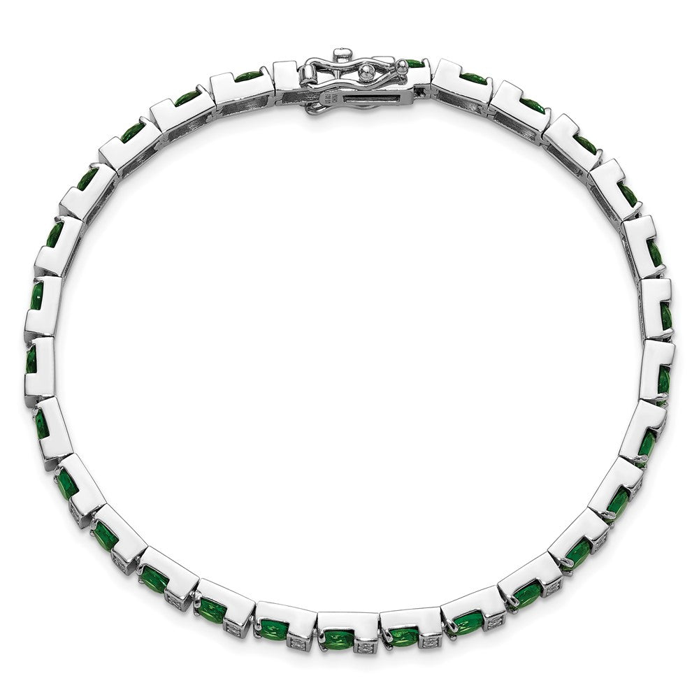 Cheryl M Sterling Silver Rhodium-plated Polished Green Glass and CZ 7. Bracelet