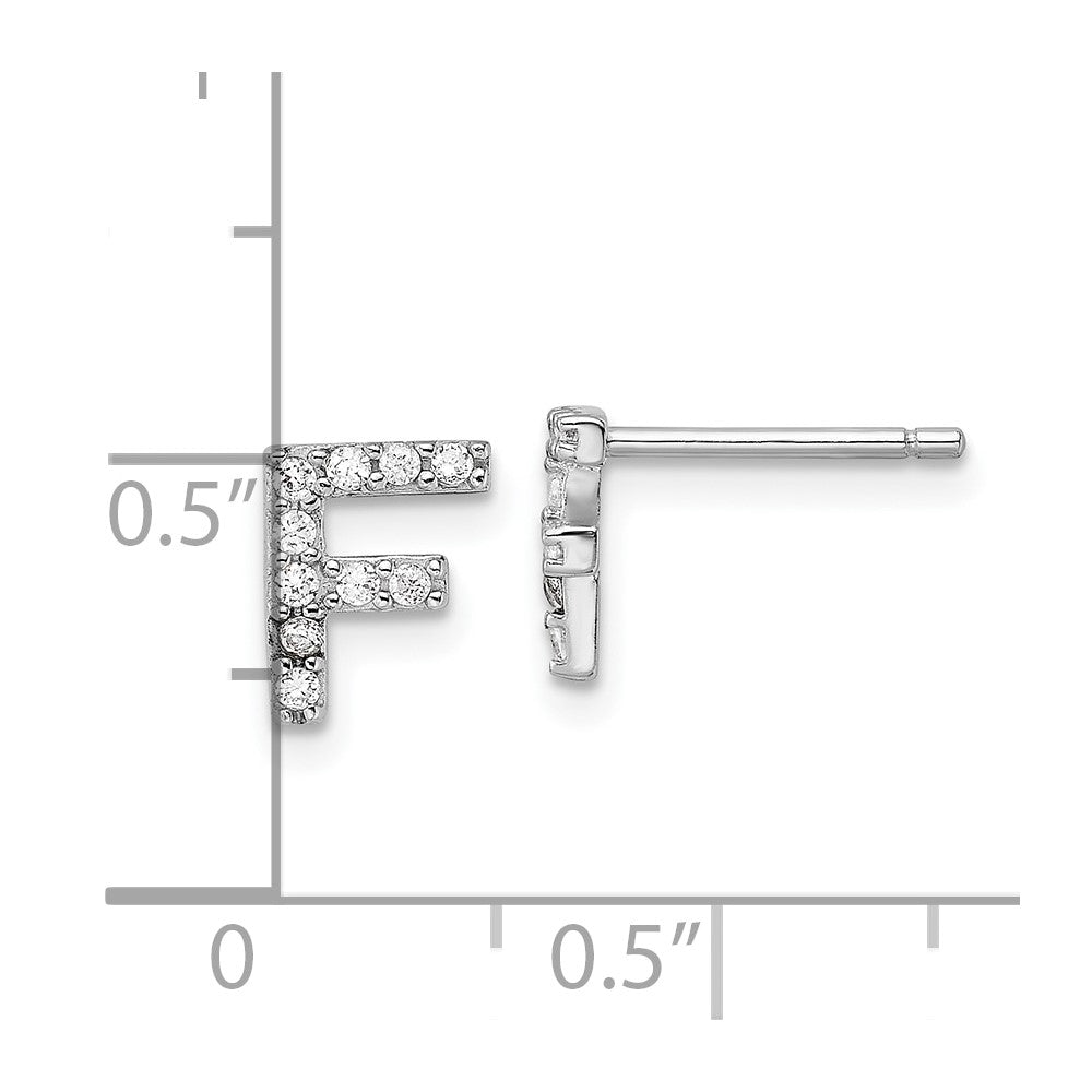 Cheryl M Sterling Silver Rhodium-plated Polished Letter F CZ Initial Post Earrings