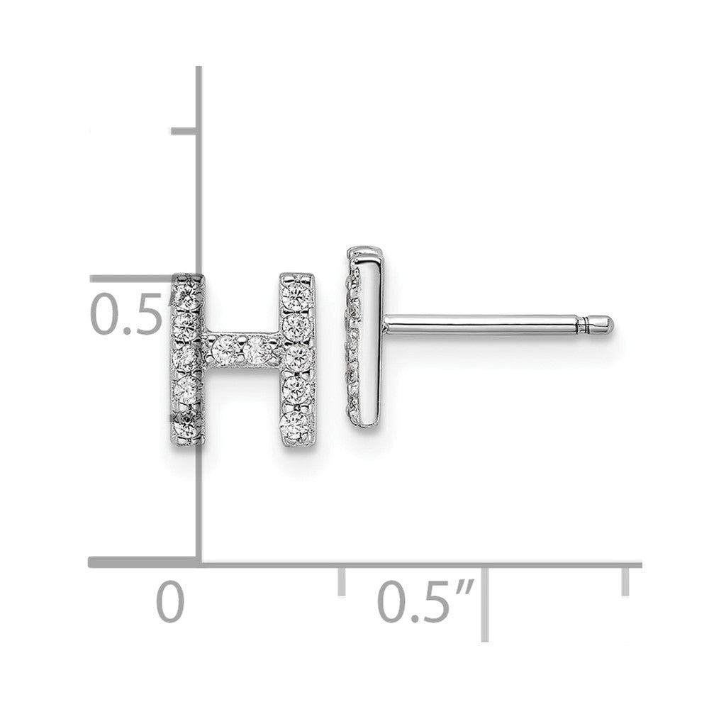 Cheryl M Sterling Silver Rhodium-plated Polished Letter H CZ Initial Post Earrings