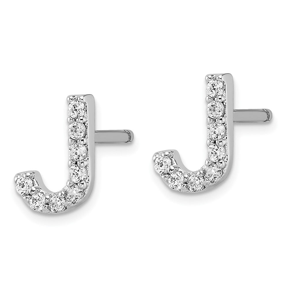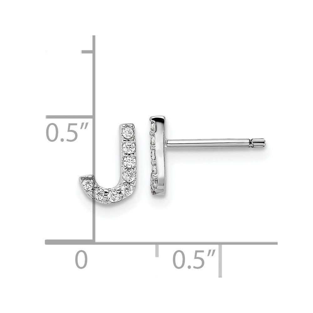 Cheryl M Sterling Silver Rhodium-plated Polished Letter J CZ Initial Post Earrings