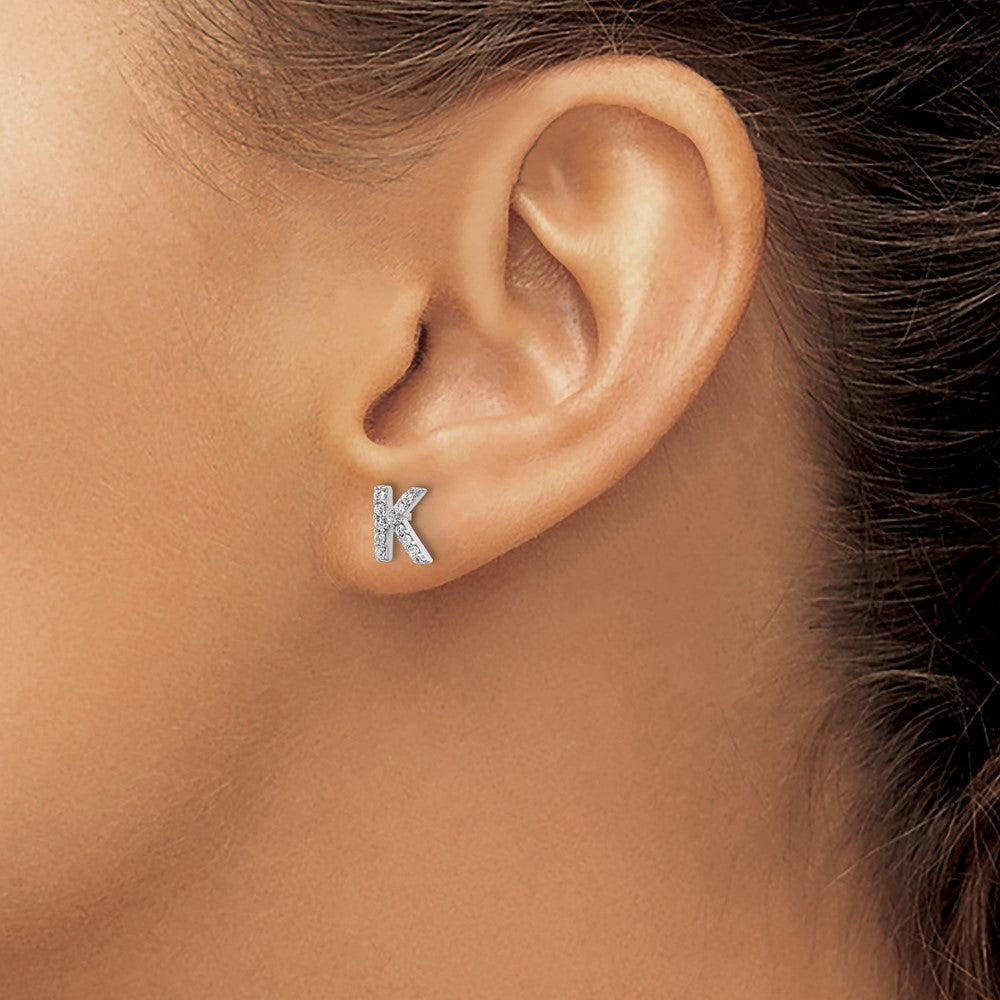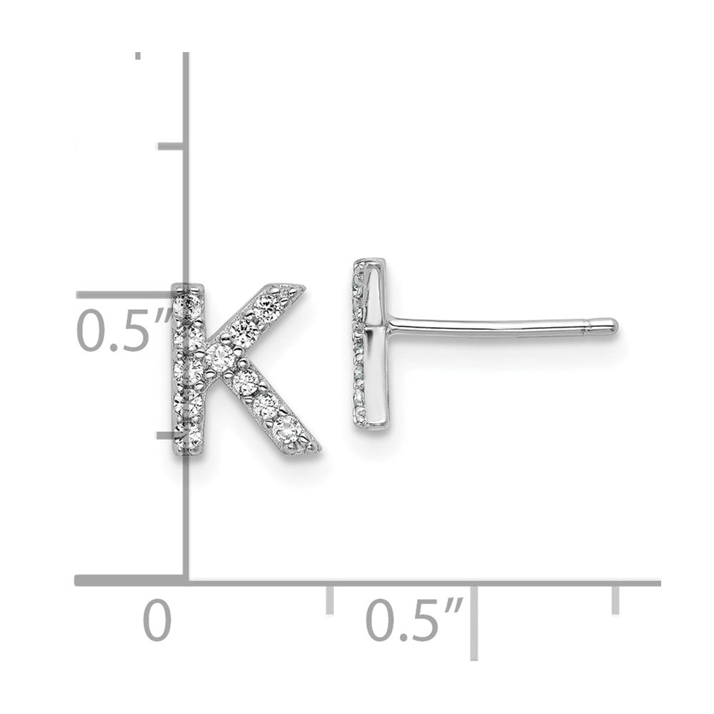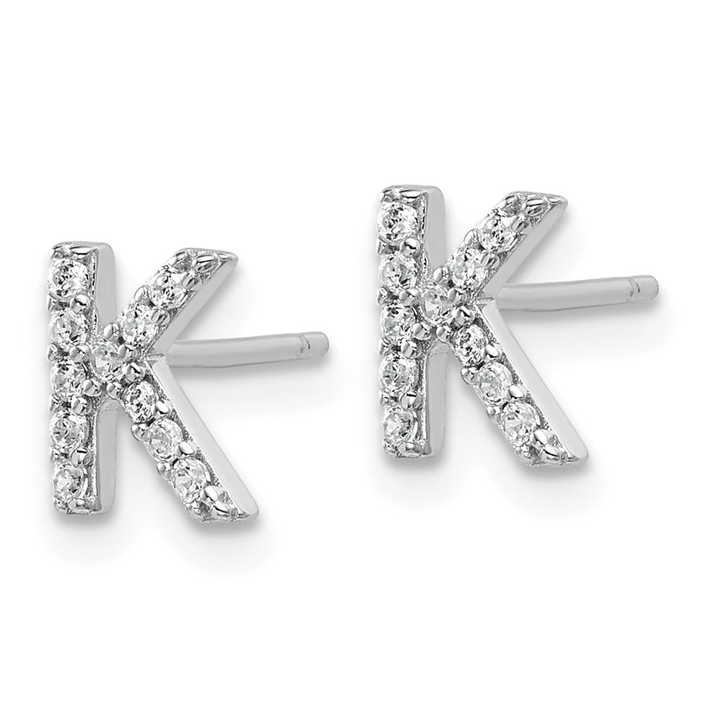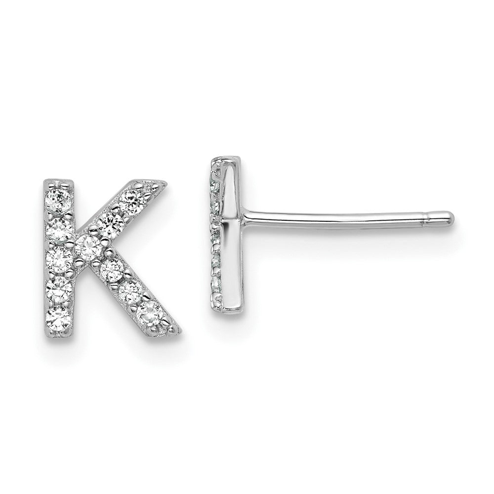 Cheryl M Sterling Silver Rhodium-plated Polished Letter K CZ Initial Post Earrings