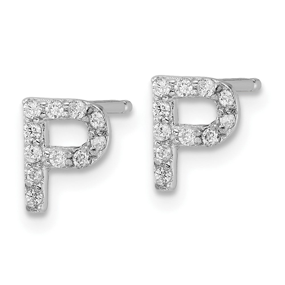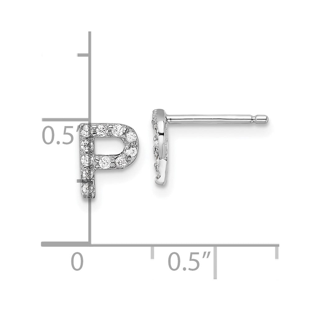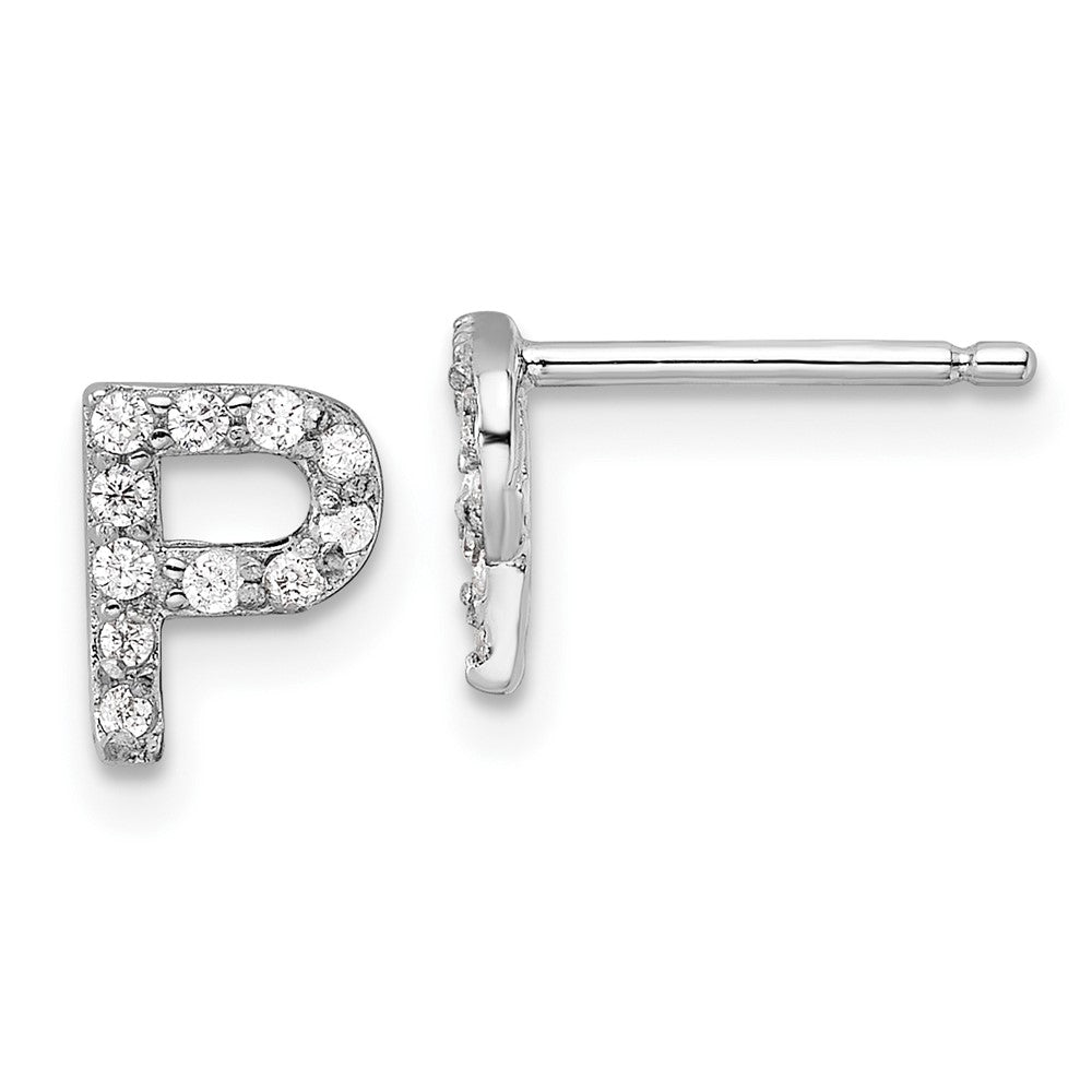 Cheryl M Sterling Silver Rhodium-plated Polished Letter P CZ Initial Post Earrings