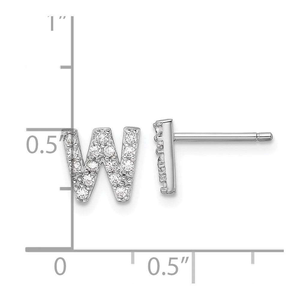 Cheryl M Sterling Silver Rhodium-plated Polished Letter W CZ Initial Post Earrings