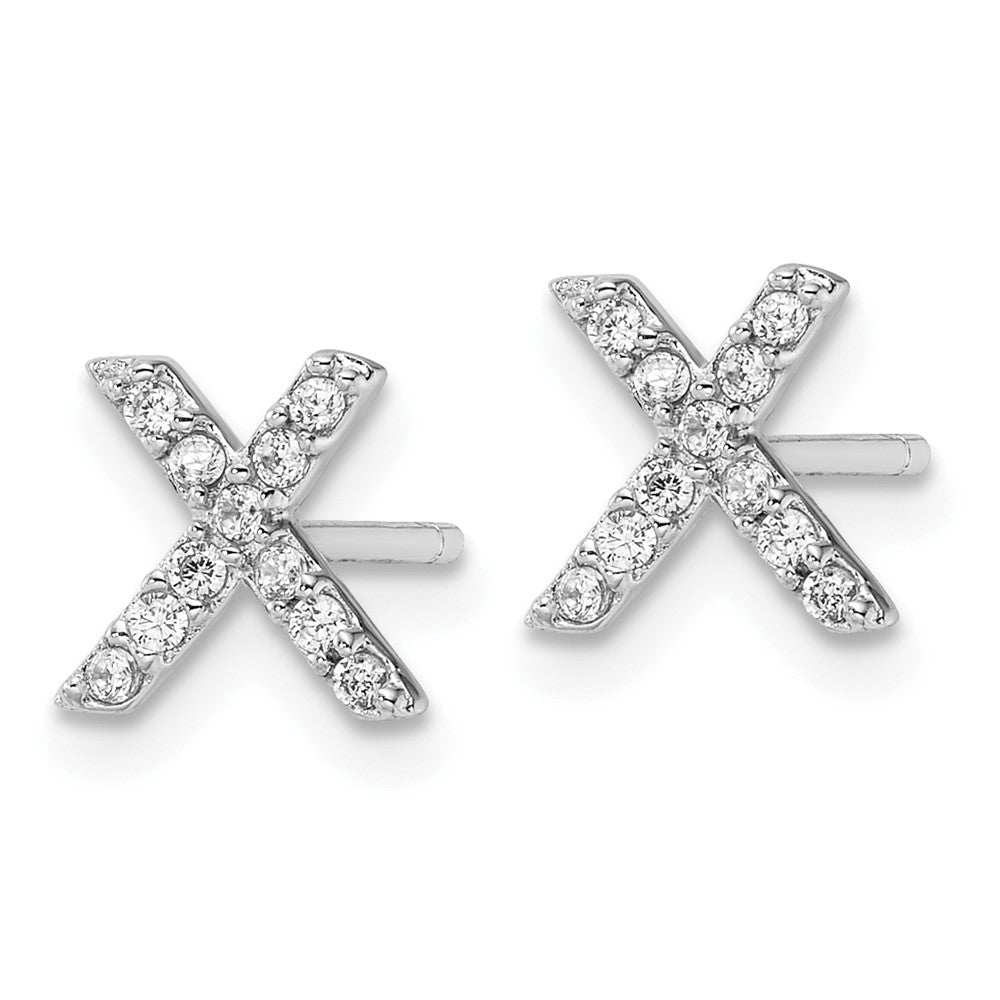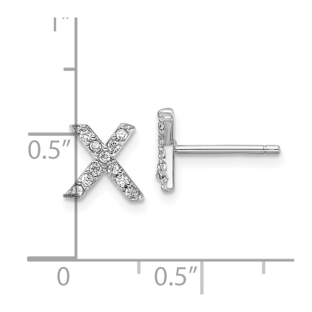 Cheryl M Sterling Silver Rhodium-plated Polished Letter X CZ Initial Post Earrings