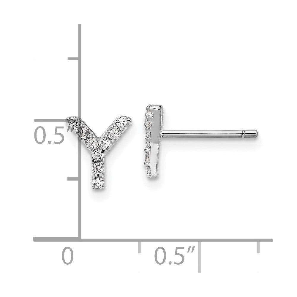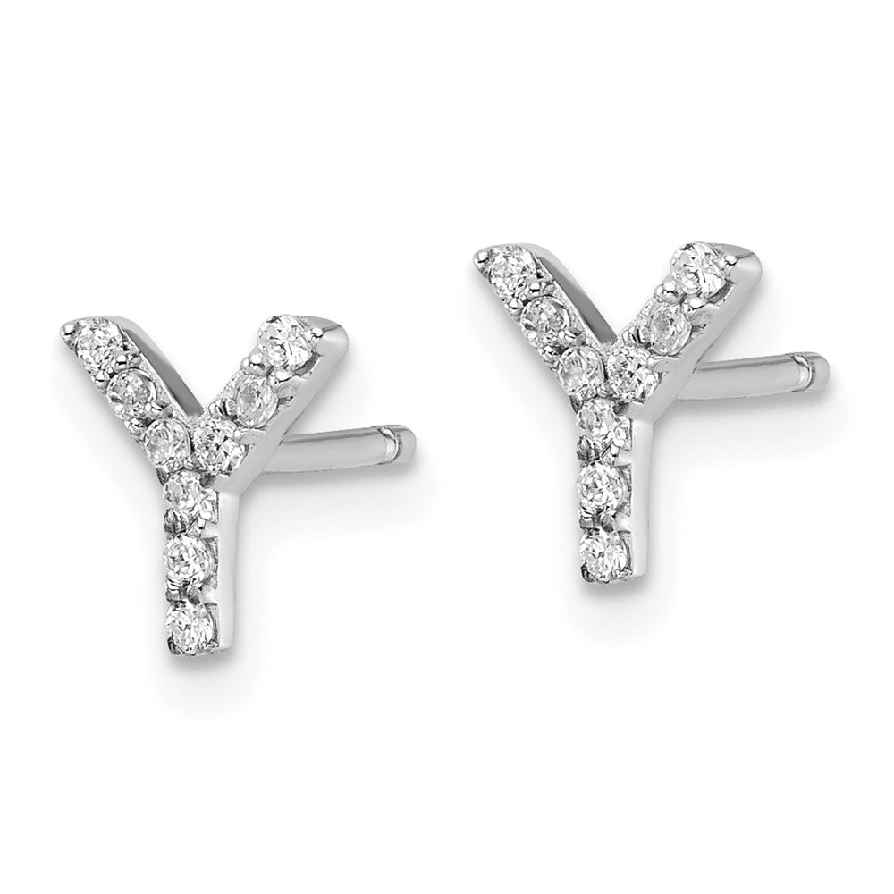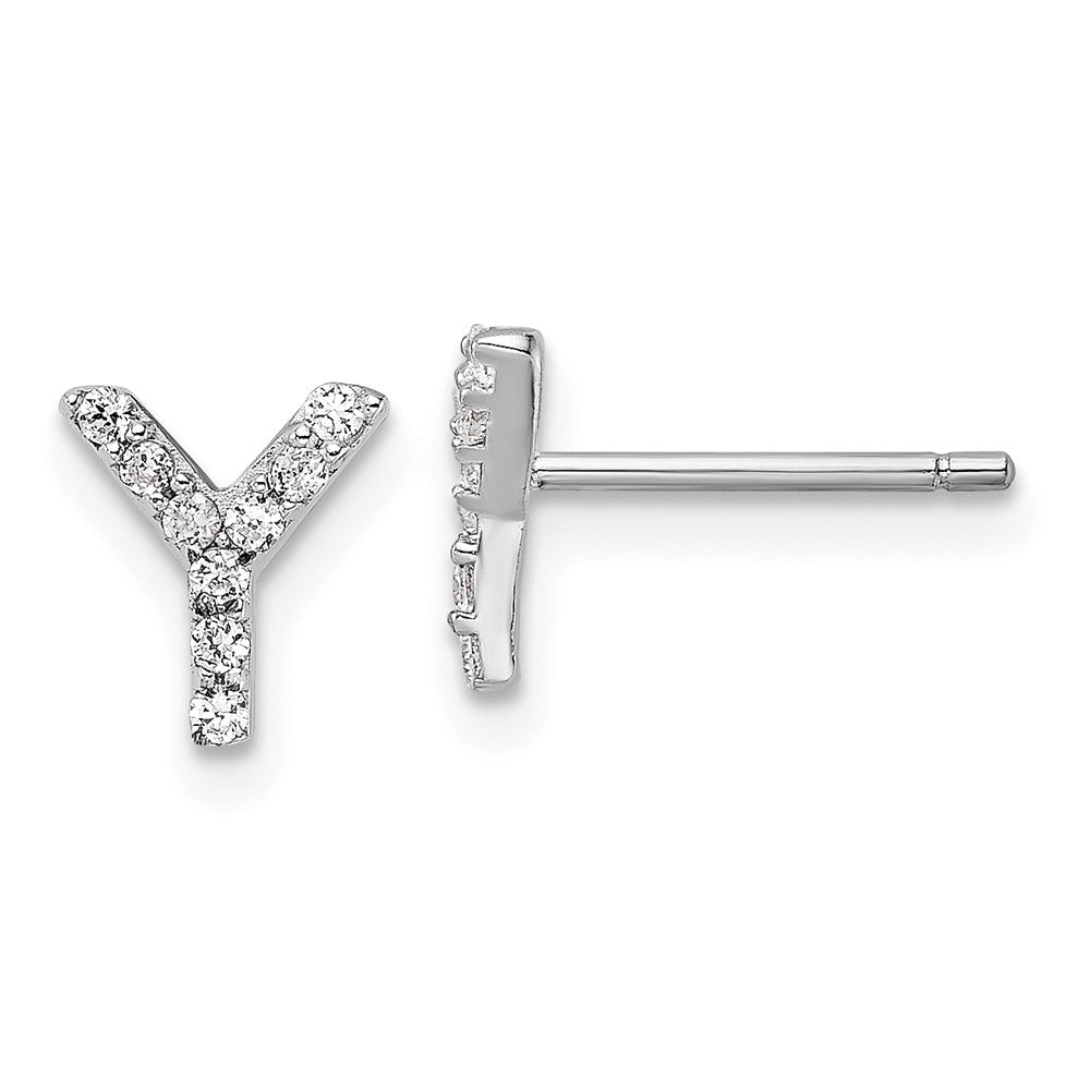Cheryl M Sterling Silver Rhodium-plated Polished Letter Y CZ Initial Post Earrings