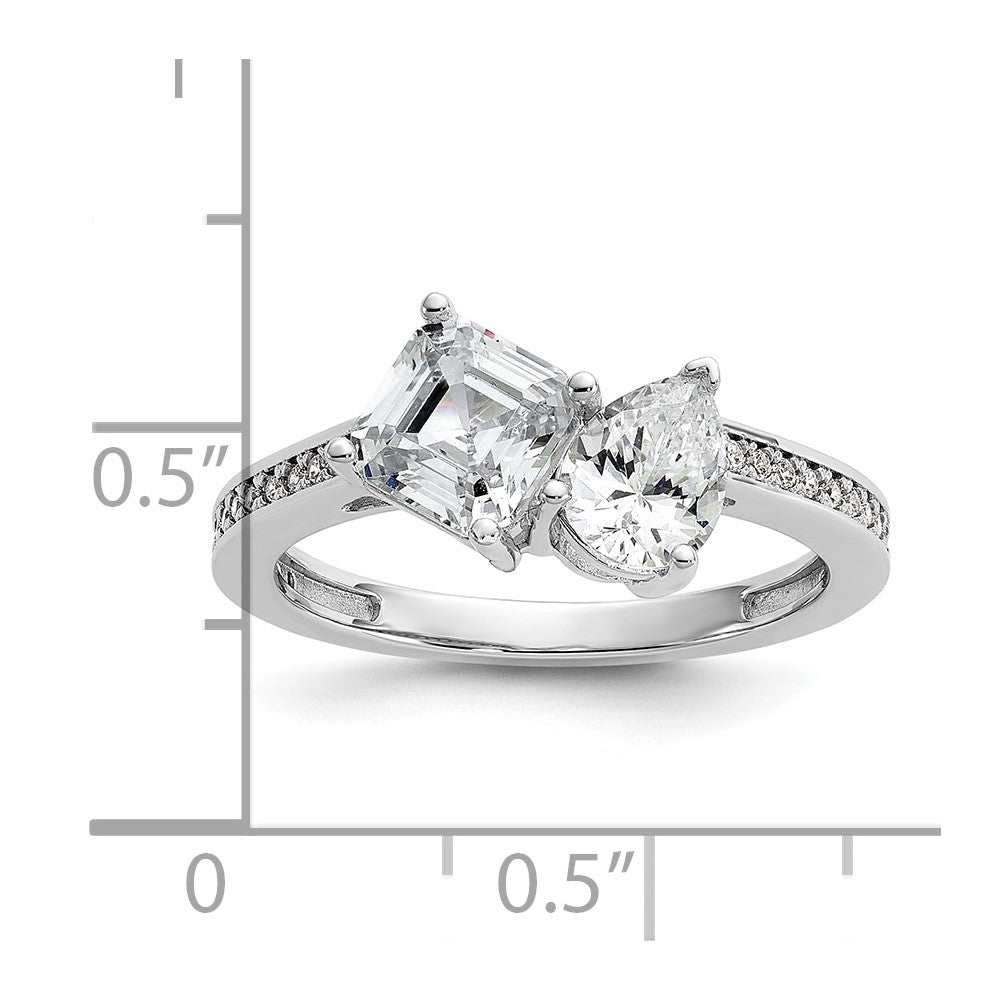 Cheryl M Sterling Silver Rhodium-plated Polished Pear and Square CZ Ring