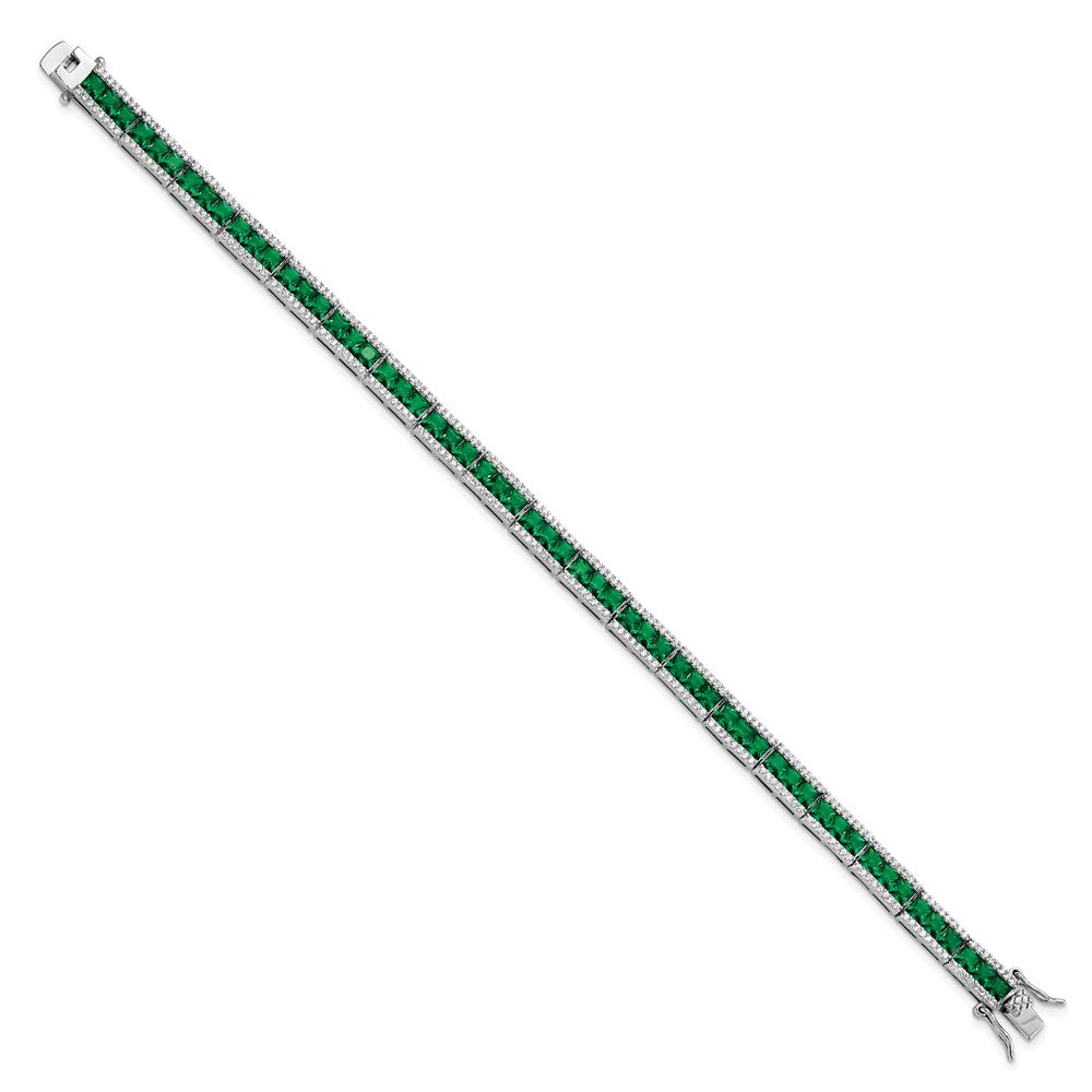 Cheryl M Sterling Silver Rhodium-plated Princess-cut Green Nano Crystal and Brilliant-cut White CZ 7. Bracelet