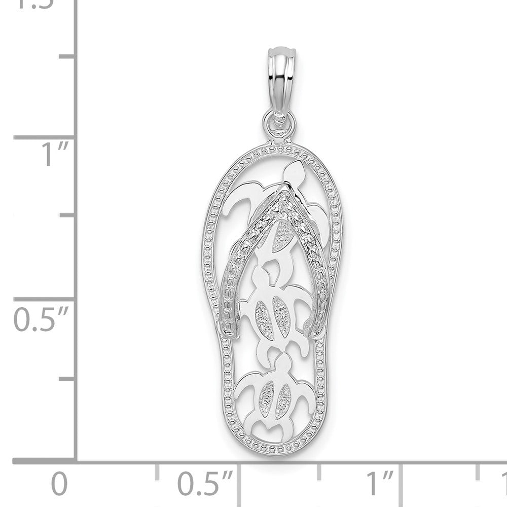 De-Ani Sterling Silver Rhodium-Plated 3D Cut-Out Turtles Flip-flop Pendant