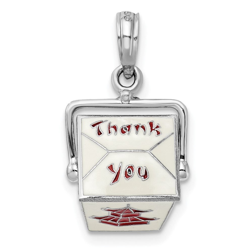 De-Ani Sterling Silver Rhodium-Plated 3D Moveable Enameled Chinese Takeout Pendant