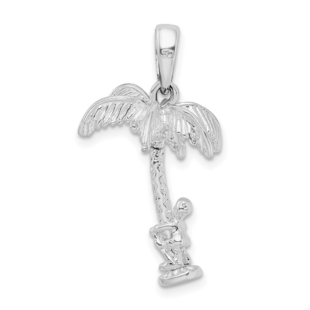De-Ani Sterling Silver Rhodium-Plated 3D Palm Tree with Moving Climber Pendant