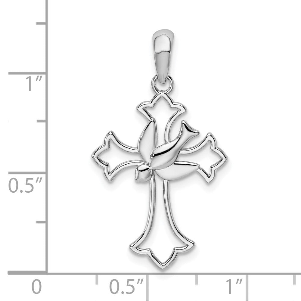 De-Ani Sterling Silver Rhodium-Plated Cut-Out Fleur de Lis Cross with Dove Pendant