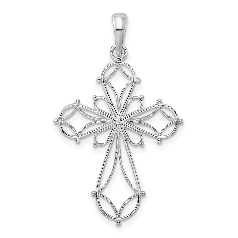 De-Ani Sterling Silver Rhodium-Plated Fancy Cut-Out Rounded Cross Pendant