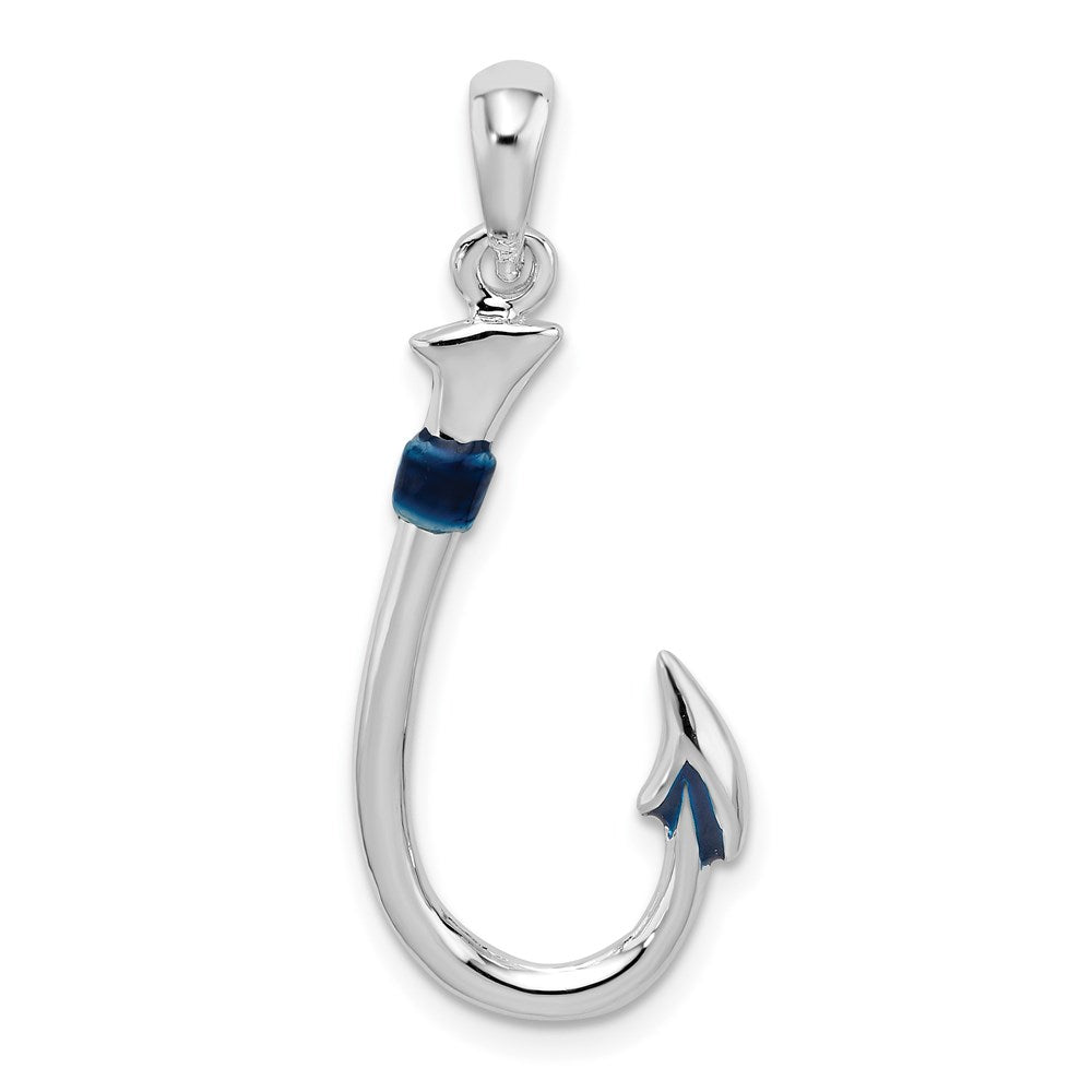 De-Ani Sterling Silver Rhodium-Plated Polished 3D Enameled Fish Hook Pendant
