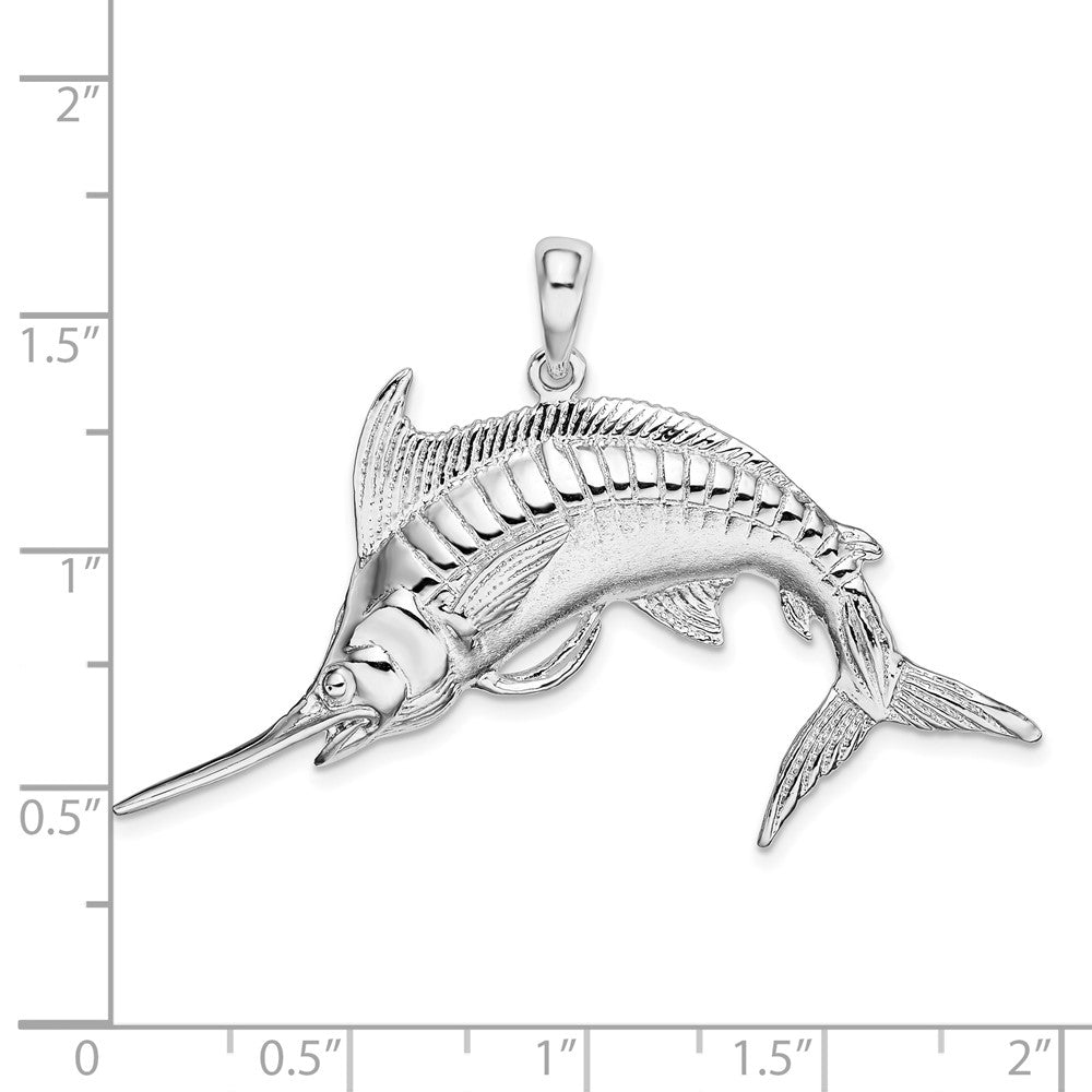 De-Ani Sterling Silver Rhodium-Plated Polished and Satin Blue Marlin Pendant