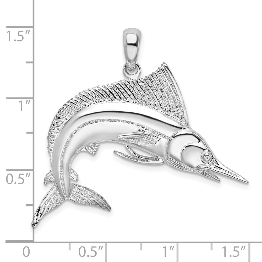 De-Ani Sterling Silver Rhodium-Plated Polished and Satin Striped Marlin Pendant