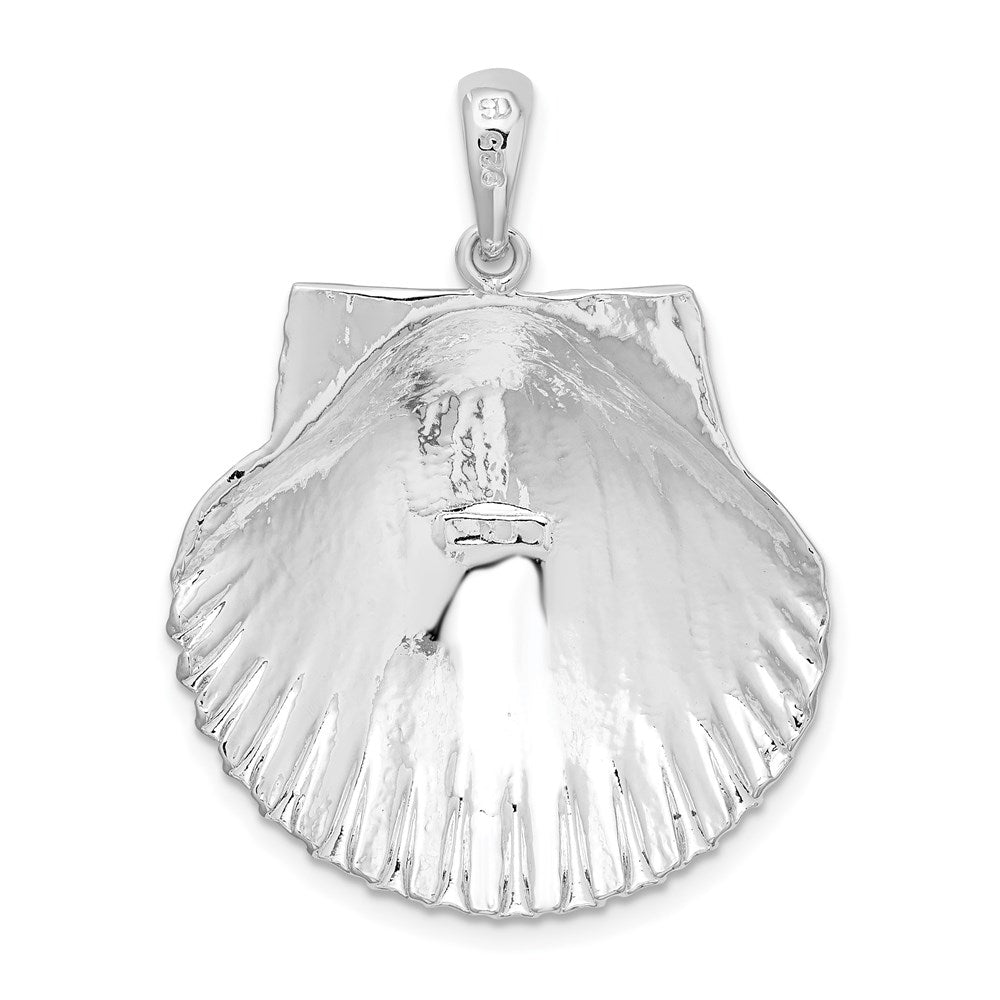 De-Ani Sterling Silver Rhodium-Plated Polished and Textured Scallop Shell Pendant