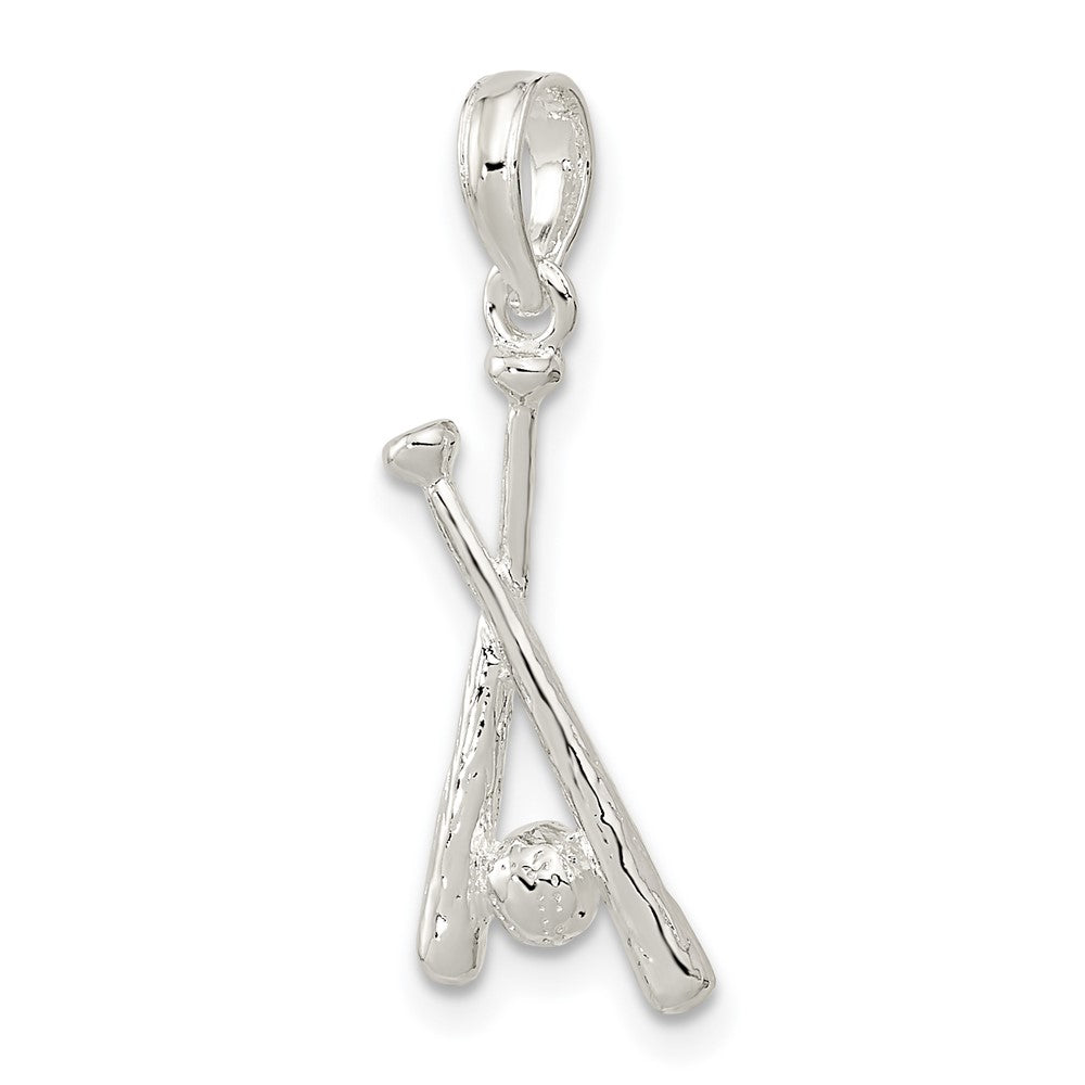 De-Ani Sterling Silver Rhodium-Plated Polished Baseball Bats and Ball Pendant