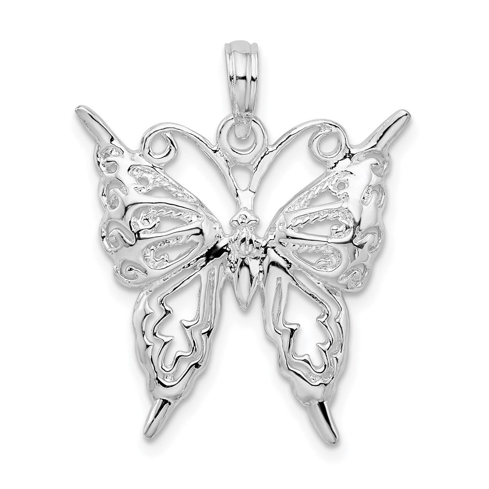 De-Ani Sterling Silver Rhodium-Plated Polished Cut-Out Butterfly Pendant