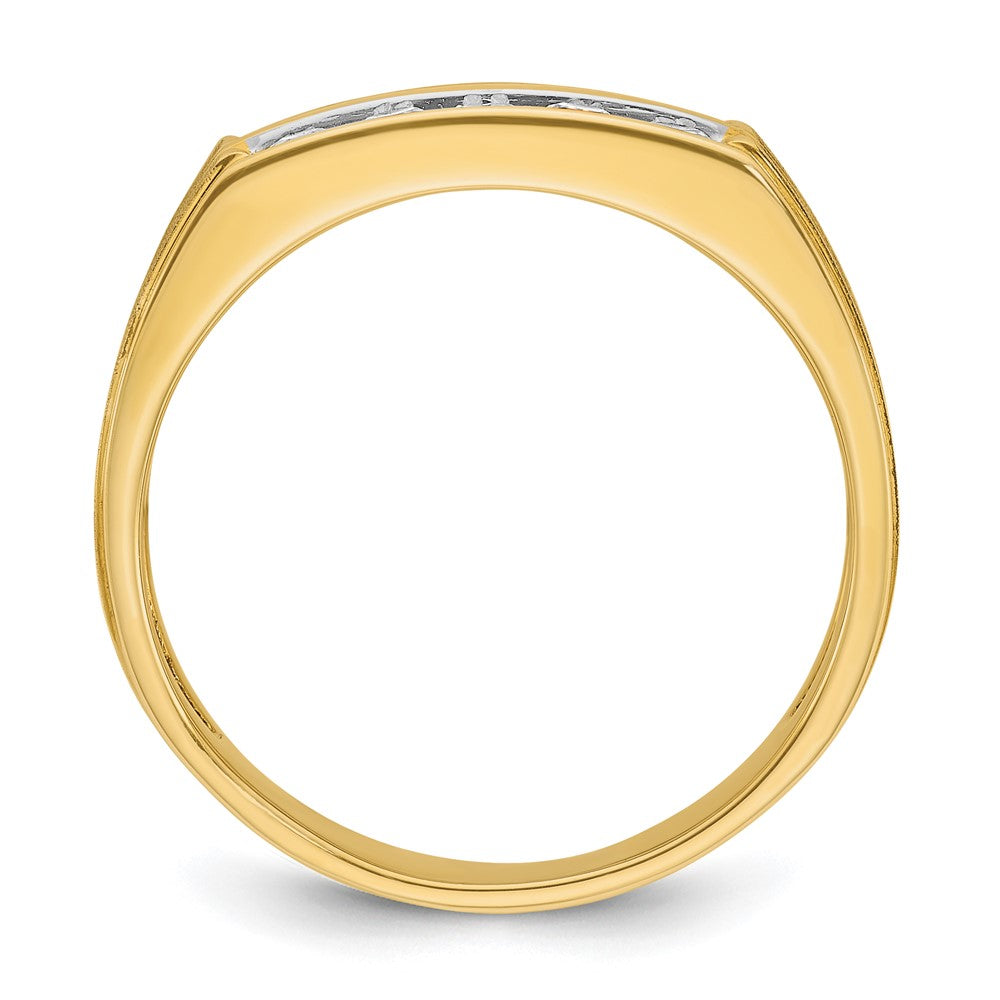 IBGoodman 14k Men's Polished Satin and Grooved 2-Row 5/8 Carat AA Quality Diamond Ring