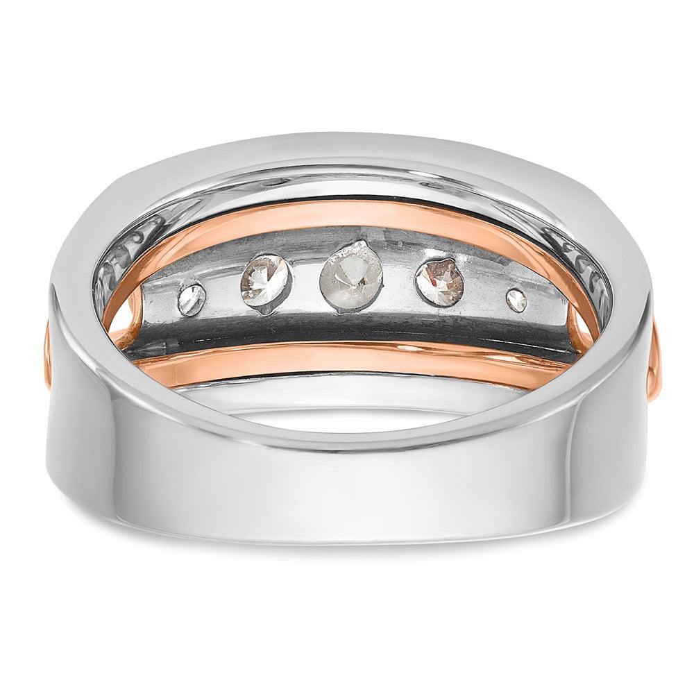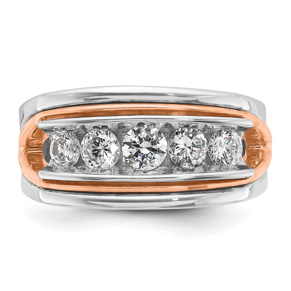 IBGoodman 14k Rose and White Gold Men's Polished Cut-Out 5-Stone 1 Carat AA Quality Diamond Ring