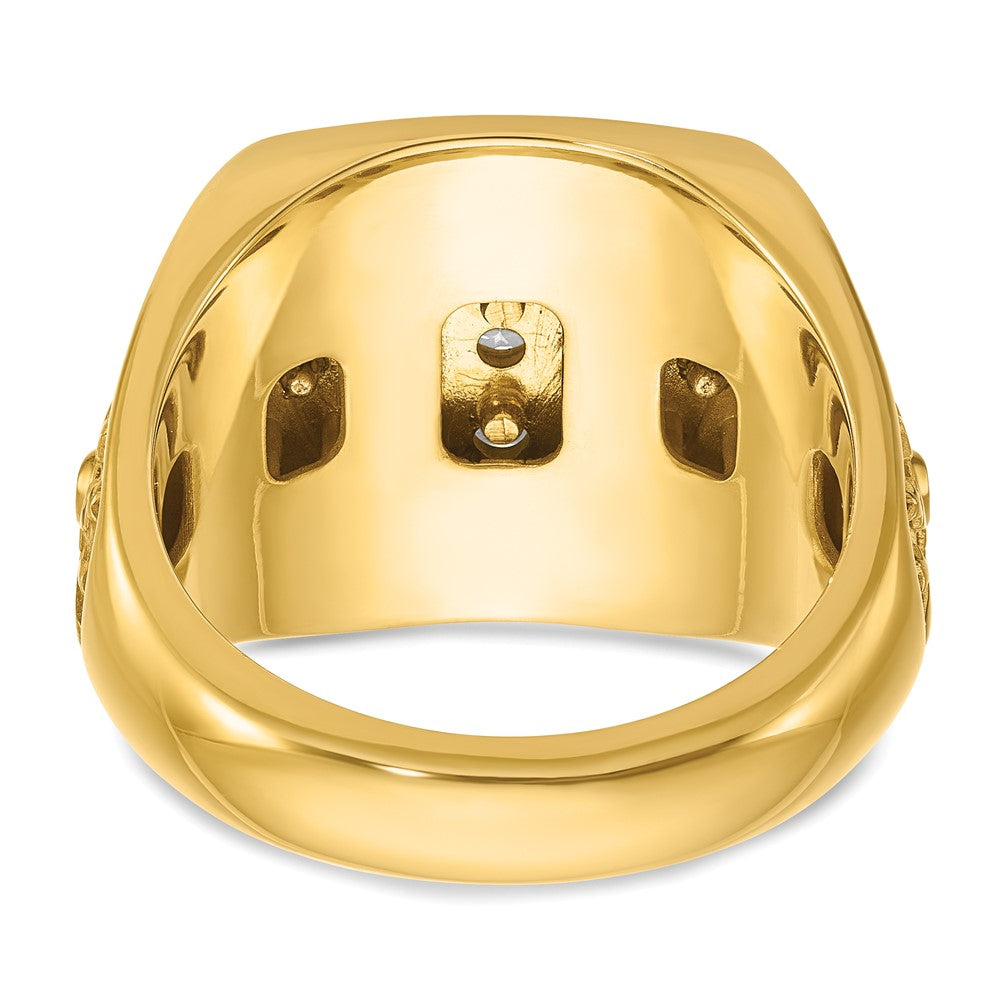 IBGoodman 14k Two-tone with Black Enamel Men's Polished Textured and Diamond-cut 1 Carat AA Quality Diamond Stars and Stripes Round Cluster Ring