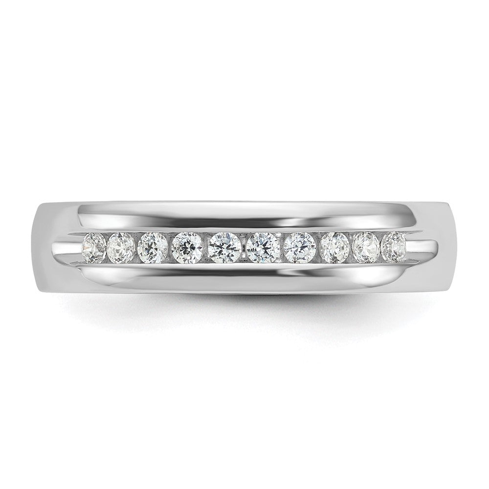 IBGoodman 14k White Gold Men's Polished and Grooved 10-Stone Ring Mounting
