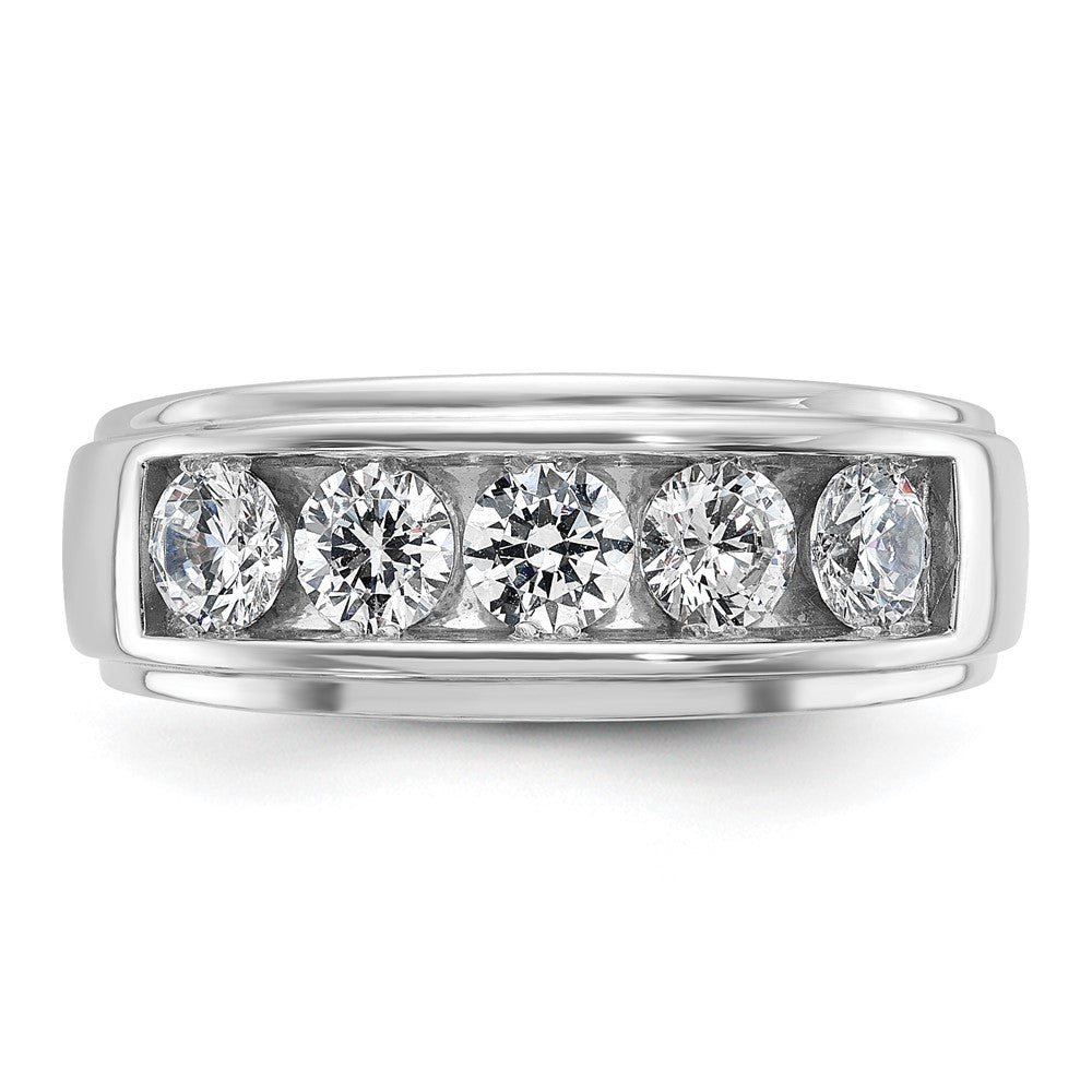 IBGoodman 14k White Gold Men's Polished and Grooved 5-Stone Ring Mounting