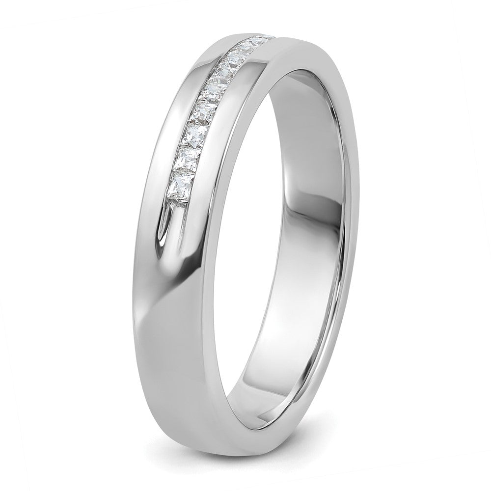 IBGoodman 14k White Gold Men's Polished and Grooved Square 10-Stone 1/4 Carat AA Quality Diamond Ring