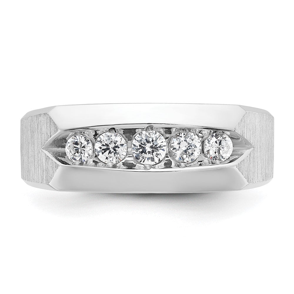 IBGoodman 14k White Gold Men's Polished and Satin 5-Stone 1/2 Carat AA Quality Diamond Ring